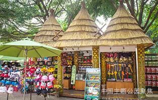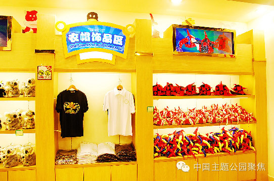 在园区内主要销售的有五大类商品:饮品、食品、纪念品、生活用品、玩具。根据区域的不同,主要有大象商场;熊猫商场;考拉商场以及金虎商场。