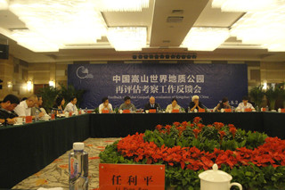 2012年7月30日-8月2日,联合国教科文组织专家莅临登封市对嵩山世界地质公园进行四年一次的再评估检查。参加再评估检查汇报会的有世界地质公园评委盖伊·马提尼教授和亚历克斯教授,国土资源部地质环境司副司长陈小宁,国家地质公园网络中心张志光,河南省国土资源厅副厅长杨士海,河南省国土资源厅地质环境处副处长李明,登封市人民政府市长乔耸,河南省山水地质旅游资源开发有限公司副总经理张忠慧、河南省地质调查院政治处主任、纪委书记、工会主席刘新号及有关领导和专家等参加了考察。